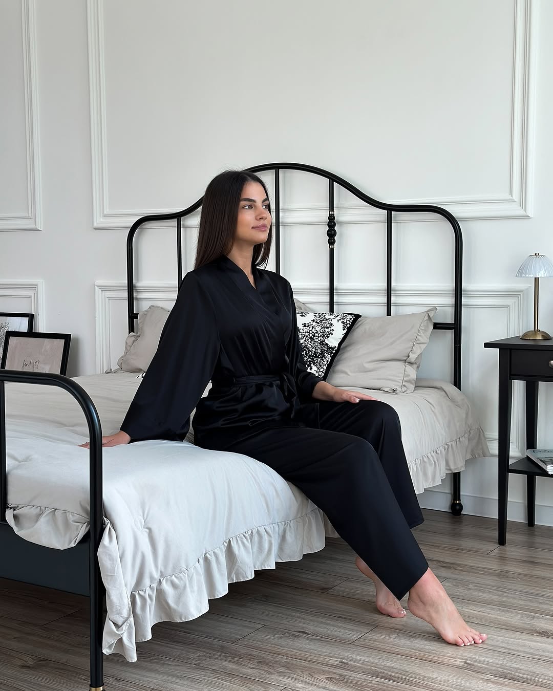 Astoria (Robe de nuit 2 pièces en satin de soie et dentelle